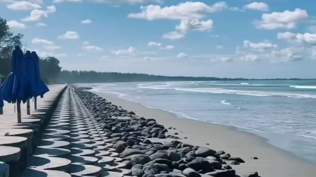 Di kejauhan, siluet Gunung Seulawah Agam tampak gagah berdiri, menambah keindahan panorama pantai ini. Udara segar dan semilir angin laut akan membuai setiap pengunjung, memberikan pengalaman relaksasi yang sempurna. Matahari terbenam di ufuk barat menyuguhkan pemandangan spektakuler, melukis langit dengan gradasi warna jingga, merah muda, dan ungu yang memukau.